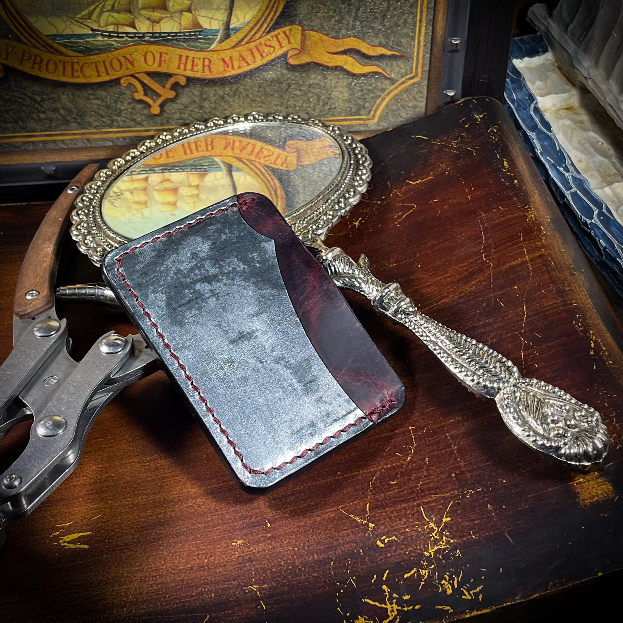 The Every Wallet is a streamlined three-pocket cardholder designed for those who move through the world with quiet confidence. Its signature Sabrehook pocket cut draws from the profile of a pirate’s cutlass—subtle but unmistakably sharp. Crafted from premium Italian veg-tan leather and hand-stitched with care, it carries just what you need without weighing you down. Much like its namesake, the Every Wallet disappears effortlessly into your pocket—leaving only a whisper of presence and a hint of legend.